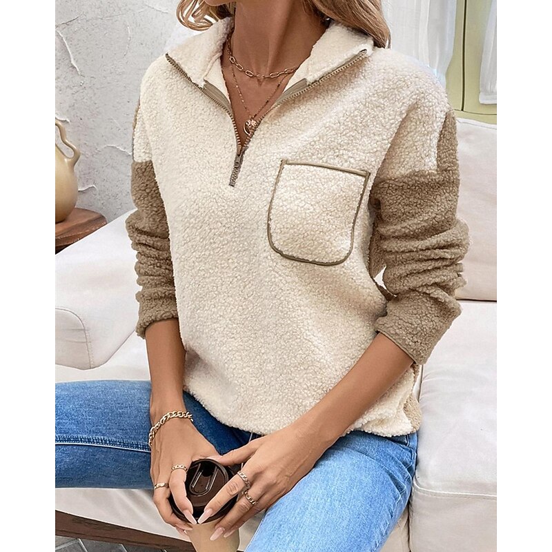 Women's Sweatshirts Zip Up Sweatshirts Color Block Streetwear Casual Sherpa Fleece Long Sleeve High Neck Regular Tops Street Holiday Going out Half Zipper Quarter Zipper Quarter Zip Khaki Winter 12