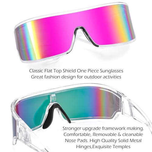 • Unique Design - Fashion flat top design, one piece mirror lens for women men. Unique Futuristic shield frame design brightens people's eyes, and the punk style design shows a full sense of technology.