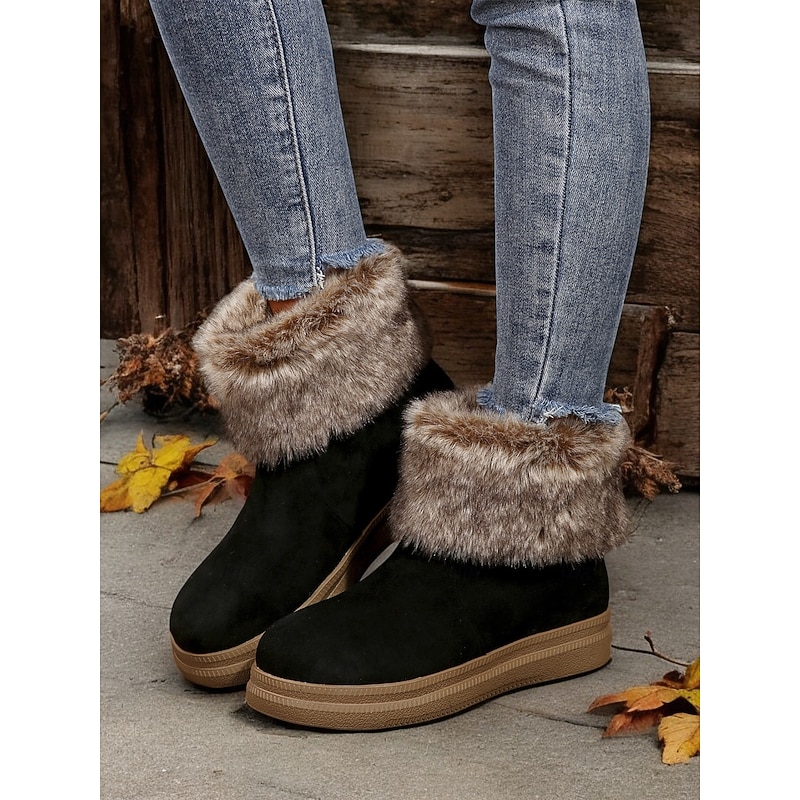 Women's Faux Fur-Lined Winter Ankle Boots with Suede Upper – Cozy Warm Footwear for Cold Weather 1
