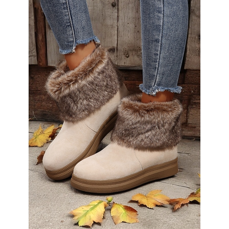 HOT ! Women's Faux Fur-Lined Winter Ankle Boots with Suede Upper – Cozy Warm Footwear for Cold Weather