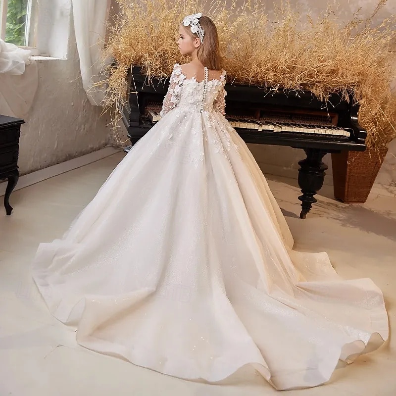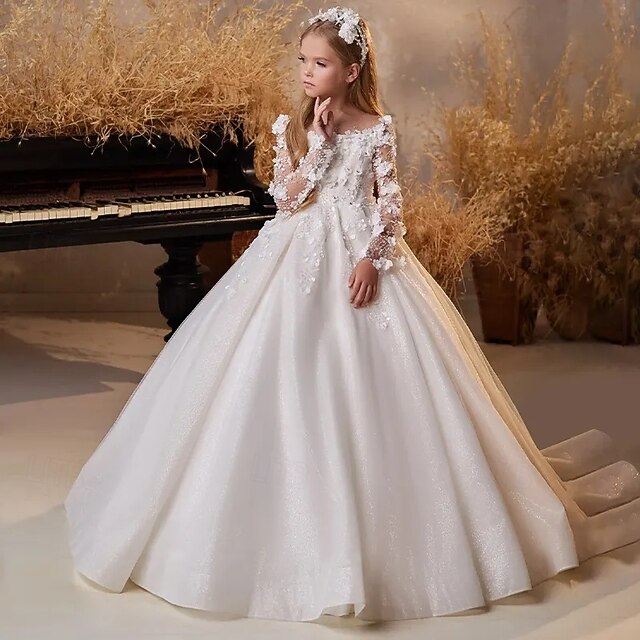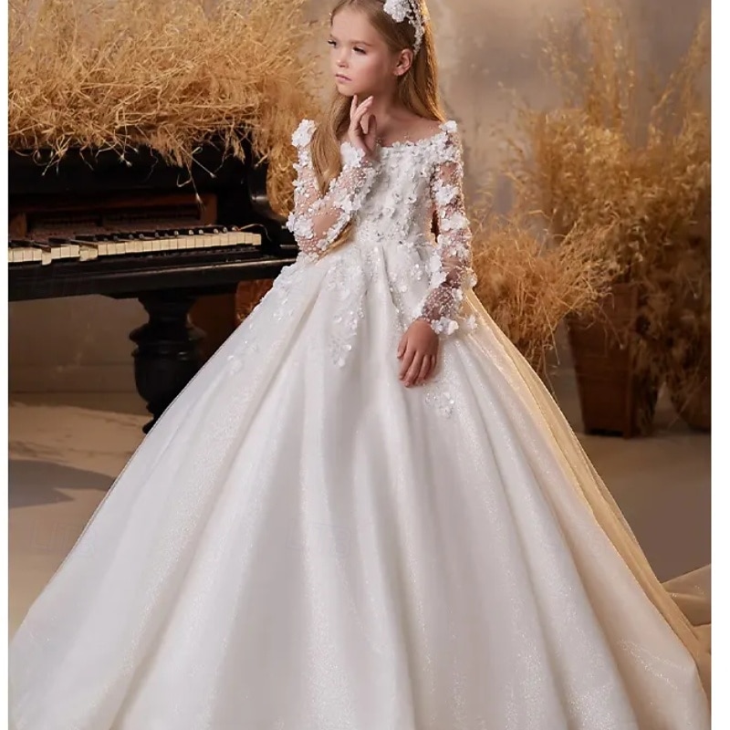 More information about Ball Gown Sweep / Brush Train Flower Girl Dress First Communion Frozen Elsa Girls Cute Prom Dress Tulle with Ruched Royal Style Tutu Fit 3-16 Years