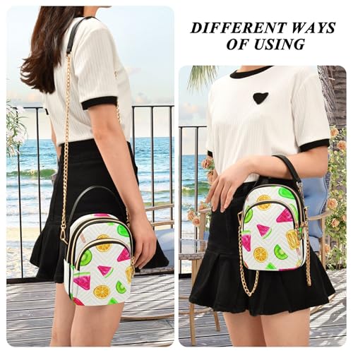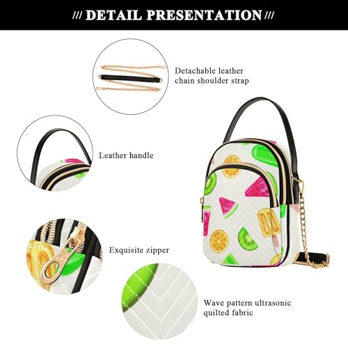 Playful Watercolor Fruit Popsicles Shoulder Handbags for Women Prints Chain Wallet Cell Phone Purse Quilted Zipper Crossbody Bowler Bag 4