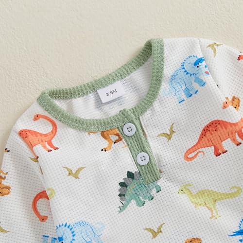 Fanvereka Infant Baby Boy Fall Outfits Dinosaur Long Sleeve Romper Overalls Long Pants Suit Hat Set 3 6 12 18 Months 6