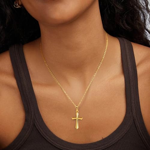 • [LONG-LASTING SHINE] Made from tarnish-resistant materials, this gold cross chain retains its golden luster through everyday wear. Resistant to fading and oxidation, the gold cross pendant is a timeless keepsake that remains radiant and reliable for years to come