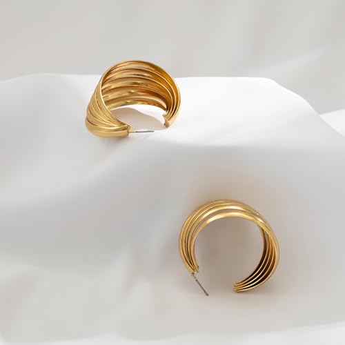 14K Gold Thick Statement Drop Dangle Earrings for Women,Big Chunky Geometric Wavy Hoop Earrings Party Prom Vintage Jewelry Gifts 6