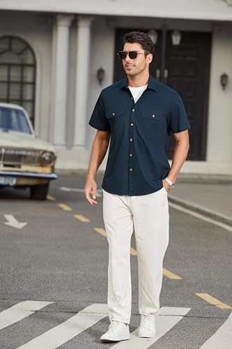 HISDERN Mens Short Sleeve Button Down Shirts Work Casual Button Up Relaxed Fit Summer Shirt with Two Pockets 5