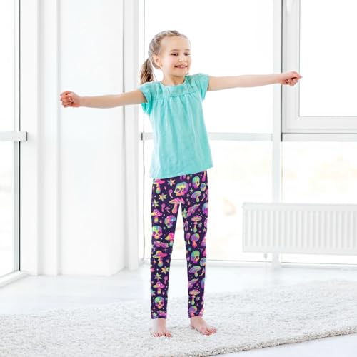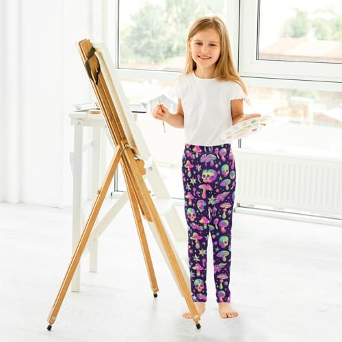Wusikd Colorful Mushrooms Girls' Leggings Toddler Doodles Skulls Stars Kids Yoga Pants Dance Active Tights 4T 7