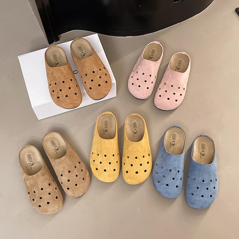 Suede comfort clogs with ventilation holes, indoor and outdoor house slippers, available in blue, yellow, brown, pink and khaki. 5