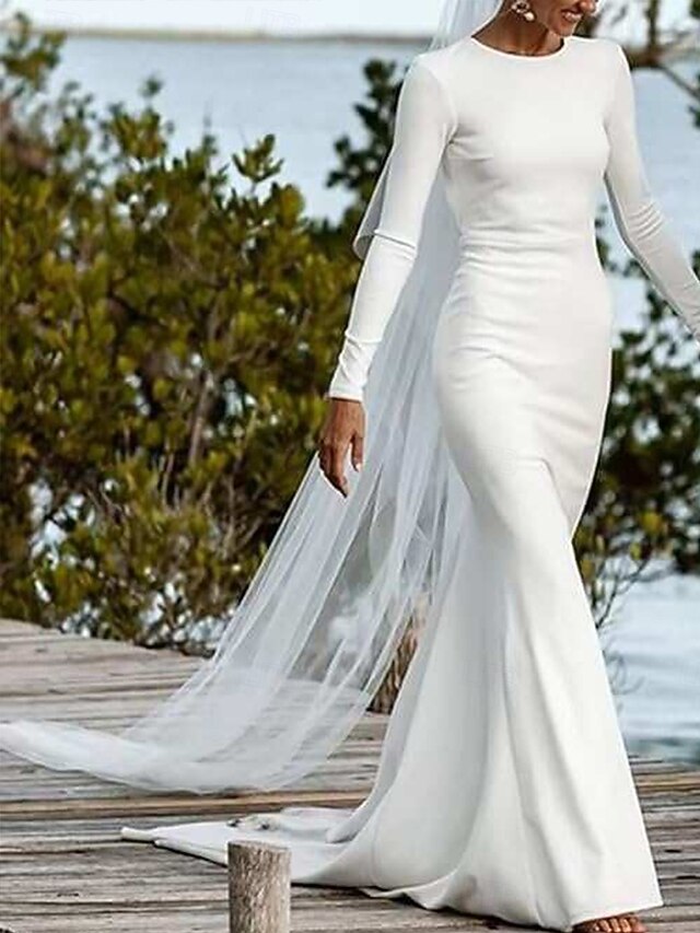 More information about Wedding Dresses Ball Gown Scoop Neck Long Sleeve Chapel Train Satin Bridal Gowns With Pleats Ruched