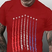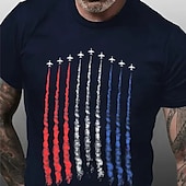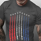 Highlights [Fabric] : Crafted from 100% premium cotton, this men's T-shirt is designed to provide exceptional softness and breathability, ensuring comfort throughout the day. The micro-elastic fabric enhances mobility, making it perfect for everyday casual wear. [Fit] : Featuring a classic crew neck and regular fit, this T-shirt offers a balanced silhouette that complements a variety of body types. The short sleeves add to the relaxed and comfortable fit, ideal for a laid-back style. [Design Highlights] : The T-shirt showcases a striking graphic print of the national flag, with military aircraft contrails depicted in vibrant red, white, and blue colors. The bold design stands out beautifully against the dark background, making it a statement piece that reflects national pride. [Occasions] : Perfect for outdoor street fashion, daily wear, and sports activities, this T-shirt seamlessly combines style and versatility. Whether you're attending casual gatherings or enjoying outdoor adventures, this tee adapts effortlessly to various settings. [Size Range] : Available in a variety of sizes from S to 2XL, this T-shirt caters to adults looking for a comfortable and stylish addition to their wardrobe. Suitable for anyone seeking a blend of fashion and functionality.