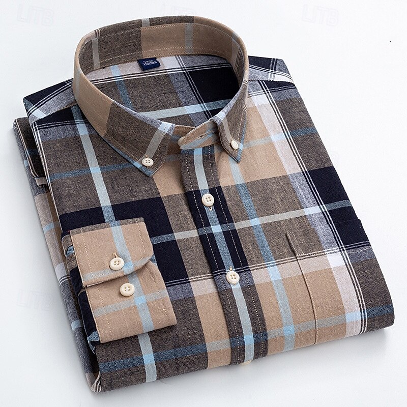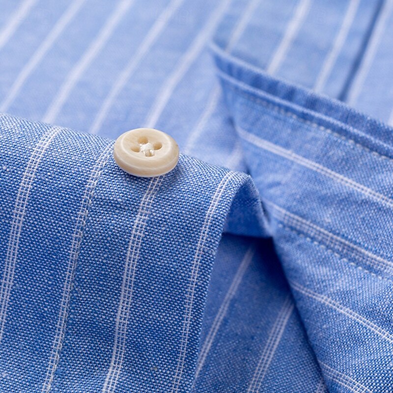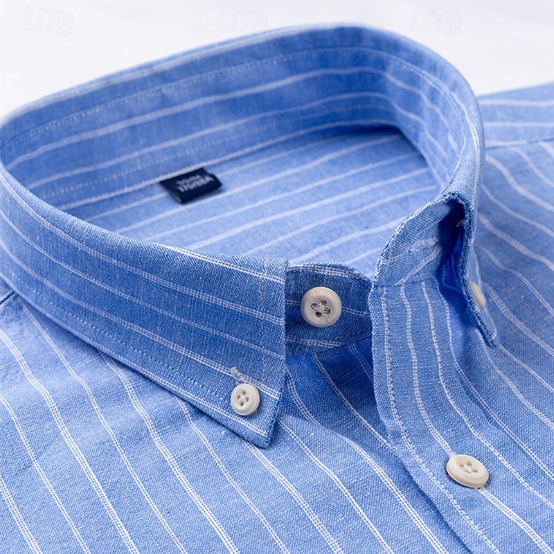 More information about Men's Linen Shirt Dress Shirt Button Down Shirt Wrinkle Resistant Plaid Shirt Plain Wedding Outdoor Light Blue White Navy Blue Brown Long Sleeve Summer Spring Clothing Apparel