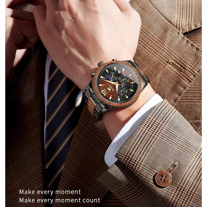 The New Olevs Men'S Business Watch With A Stainless Steel And Wood Head Strap Luminous Small Three Hands Waterproof Calendar Multi-Functional Quartz Watch High-End Casual And Fashionable Men'S Sp 15