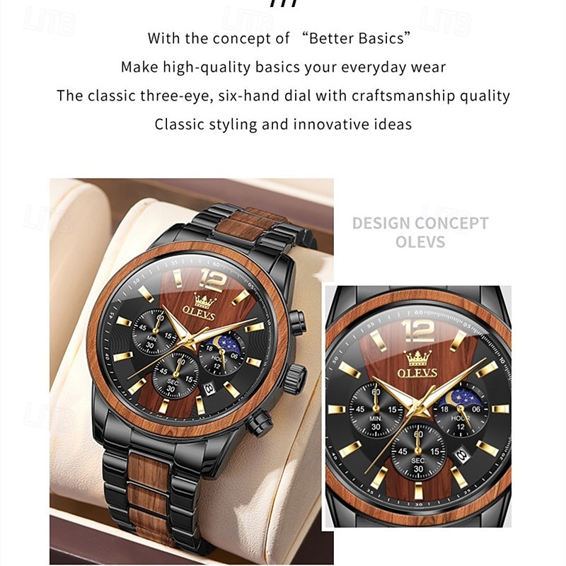$41.99 - The New Olevs Men'S Business Watch With A Stainless Steel And Wood Head Strap Luminous Small Three Hands Waterproof Calendar Multi-Functional Quartz Watch High-End Casual And Fashionable Men'S Sp 2025. Shop for cheap Quartz Watches online? Buy at lightinthebox.com on sale today!