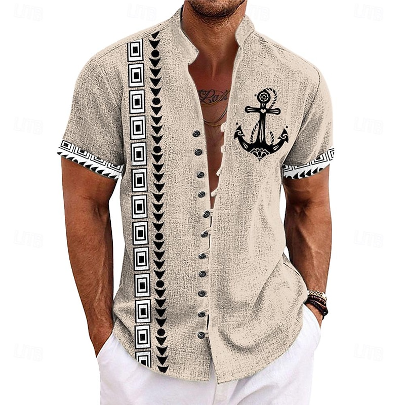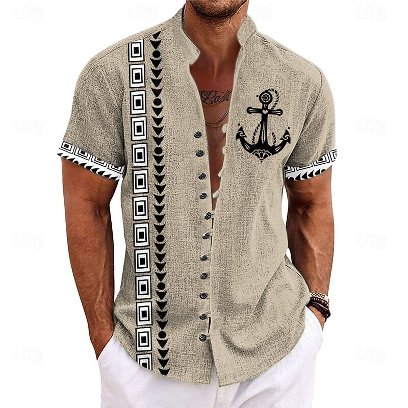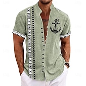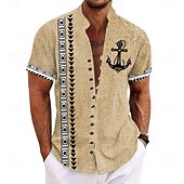 More information about Men's Nautical Shirt Button Up Shirt Short Sleeve Casual Tribal Daily Hawaiian Summer Spring Grandad Collar Band Collar Buttons Print Yellow Green Khaki Beige