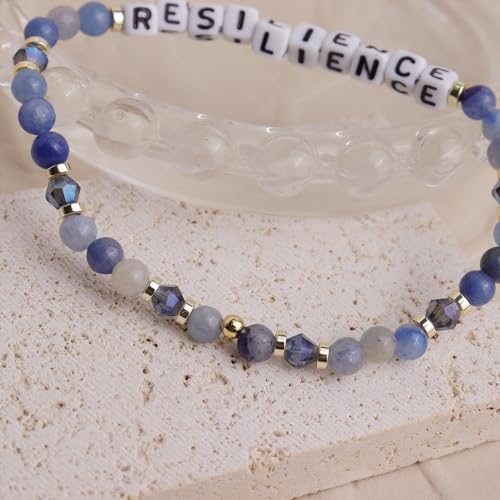 Crystal Letter Beaded Stretch Bracelets for Women, Trendy Boho Gold Natural Stone Beads Bracelet Jewelry Gift. 6