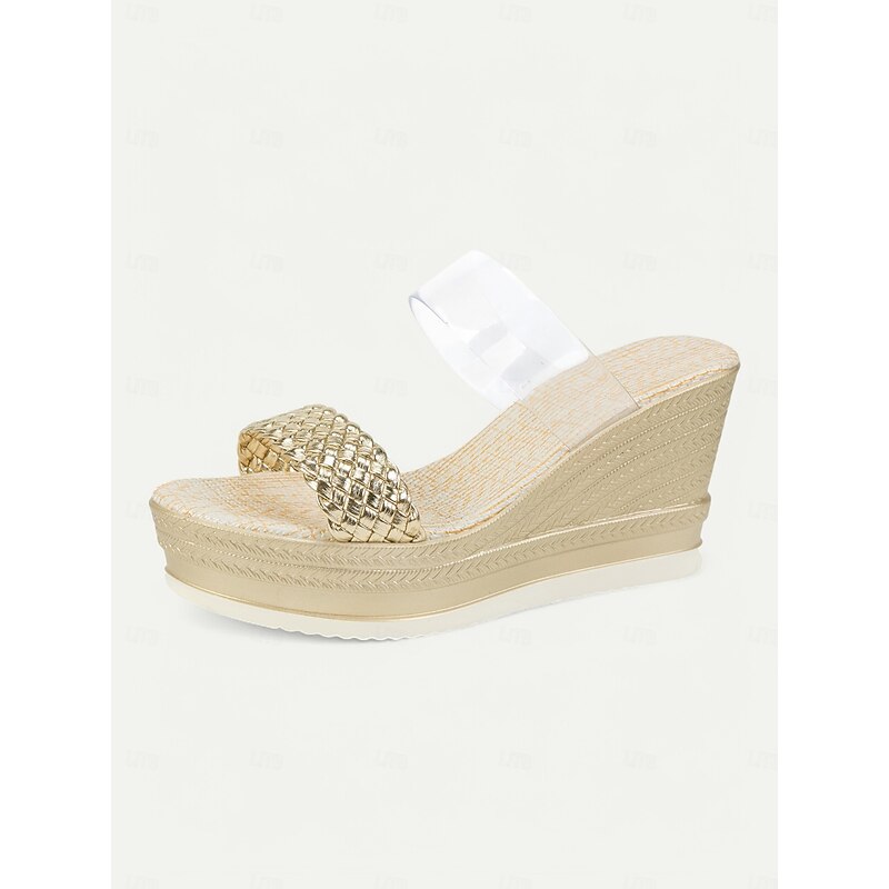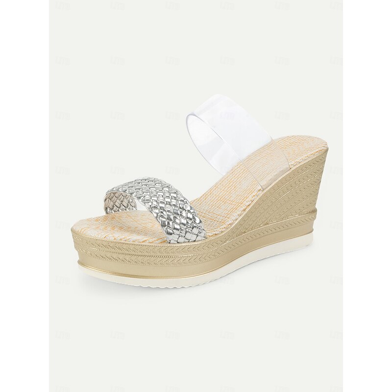 Women's Clear Strap Wedge Platform Sandals – Open-Toe Slip-On High Heel Shoes for Summer Beach & Party Wear 9