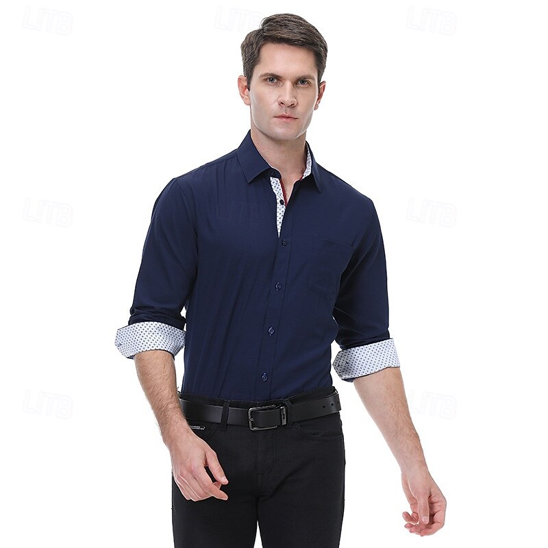 More information about Men's Dress Shirt Button Up Shirt Color Block Wedding Outdoor Black White Wine Dark Navy Long Sleeve Spread Collar Summer Spring Clothing Apparel