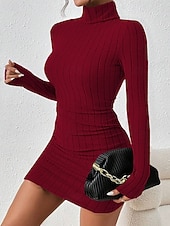 More information about Women's Midi Dress Sweater Dress Bodycon Sheath Dress Fashion Modern Vacation Daily Weekend Regular Fit Plain Long Sleeve Turtleneck Black Wine Spring Fall