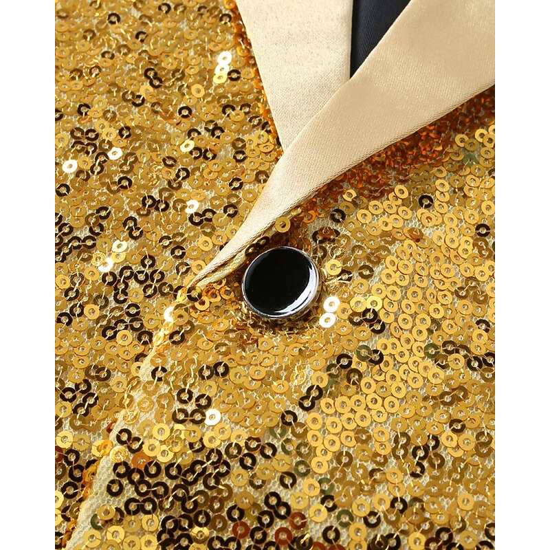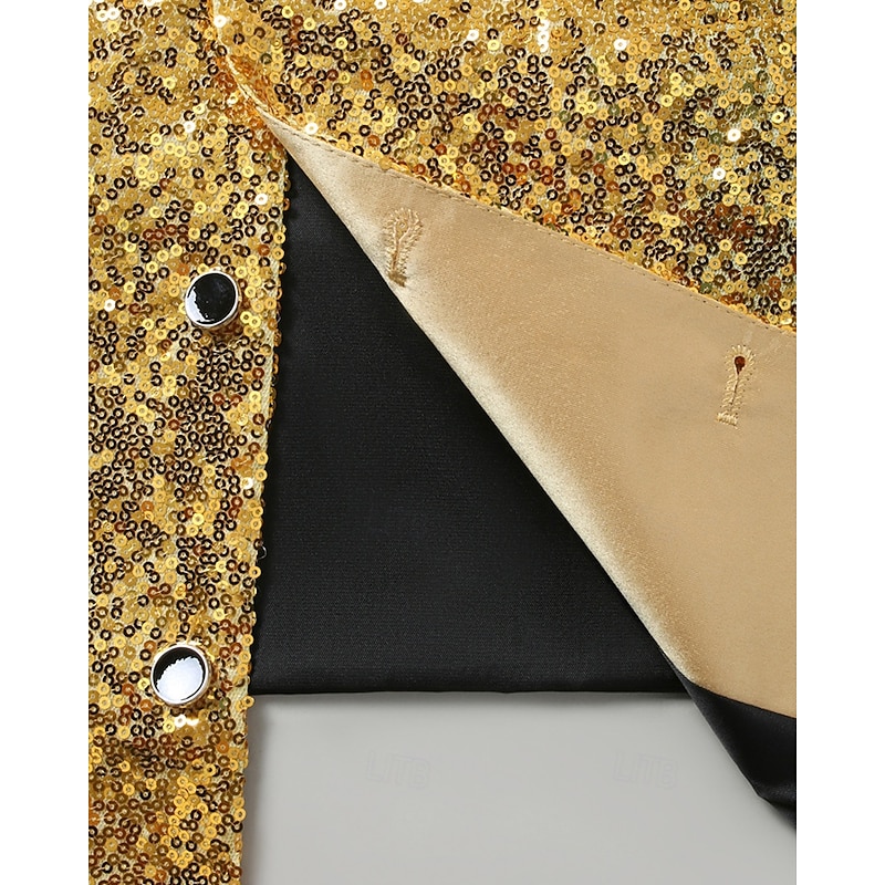 More information about Men's Vest Waistcoat Gilet Vacation Party Business Fashion Casual Spring Fall Pocket Buttons Sequin Polyester Comfortable Plain Single Breasted One-button Lapel Regular Fit Gold Vest