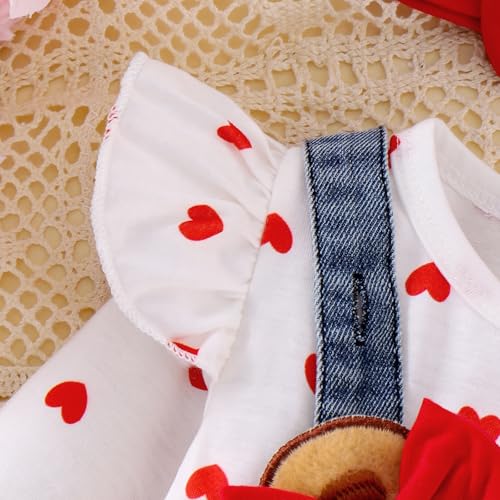 • Unique and Adorable Design: The baby girl romper features playful heart patterns and ruffle sleeves, adding a cute and fashionable touch. The suspender skirt has an adjustable design and a charming bear print, making it stylish and practical. The romper has hidden buttons, making it easy to change diapers without hassle, ensuring convenience and comfort for parents and babies alike.