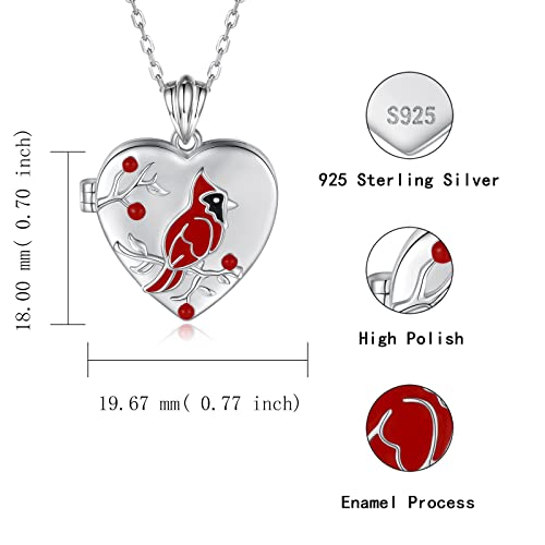 MANBU Sterling Silver Cardinal Jewelry for Women - Red Bird Stud Earrings Pendant Locket Necklace Bracelet Always In My Heart Memorial Jewelry Gift 7