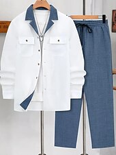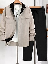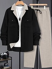 More information about Men's Lightweight Jacket Casual Jacket Set Vacation Daily Breathable Pocket 2 Piece Spring Fall Color Block Fashion Classic Lapel Regular Black Blue Brown Khaki Jacket