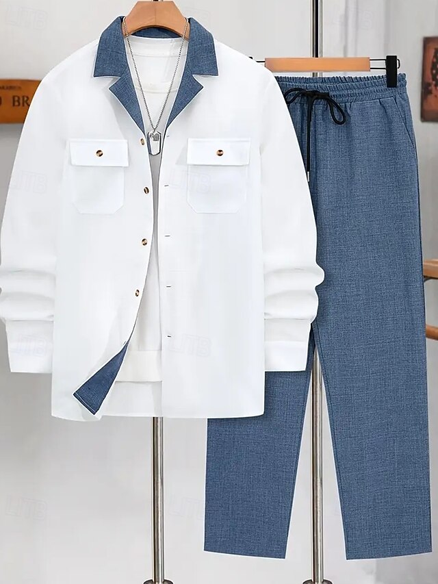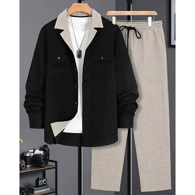 HOT ! Men's Lightweight Jacket Casual Jacket Set Vacation Daily Breathable Pocket 2 Piece Spring Fall Color Block Fashion Classic Lapel Regular Black Blue Brown Khaki Jacket