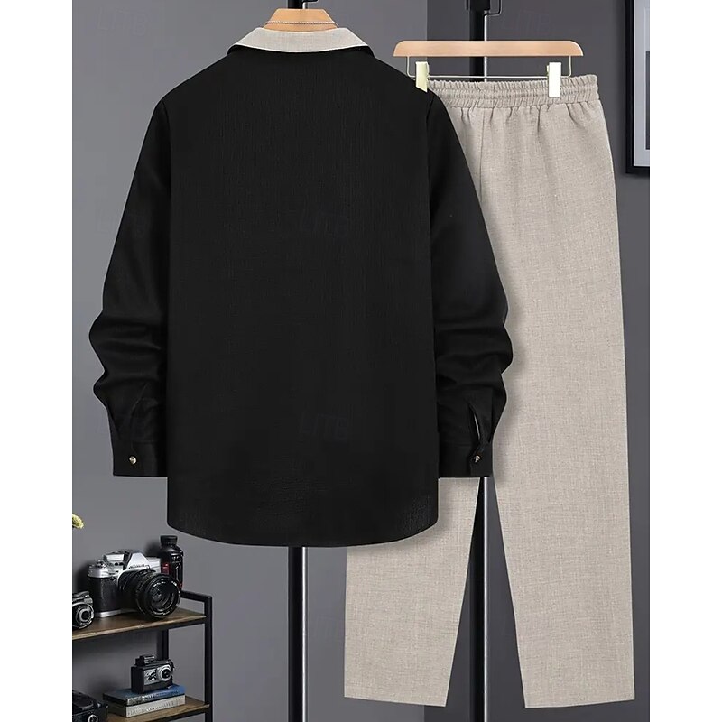 Men's Lightweight Jacket Casual Jacket Set Vacation Daily Breathable Pocket 2 Piece Spring Fall Color Block Fashion Classic Lapel Regular Black Blue Brown Khaki Jacket 2