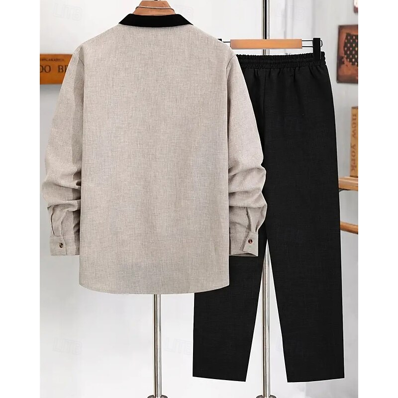 Men's Lightweight Jacket Casual Jacket Set Vacation Daily Breathable Pocket 2 Piece Spring Fall Color Block Fashion Classic Lapel Regular Black Blue Brown Khaki Jacket 20
