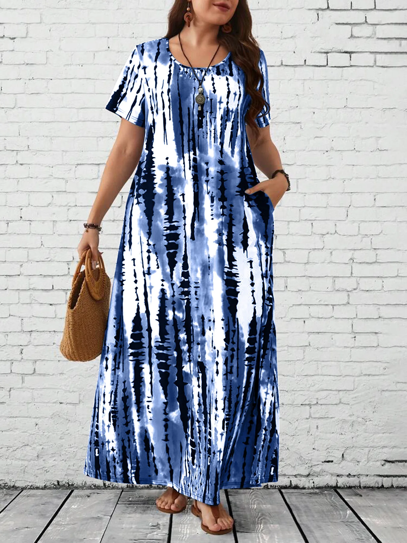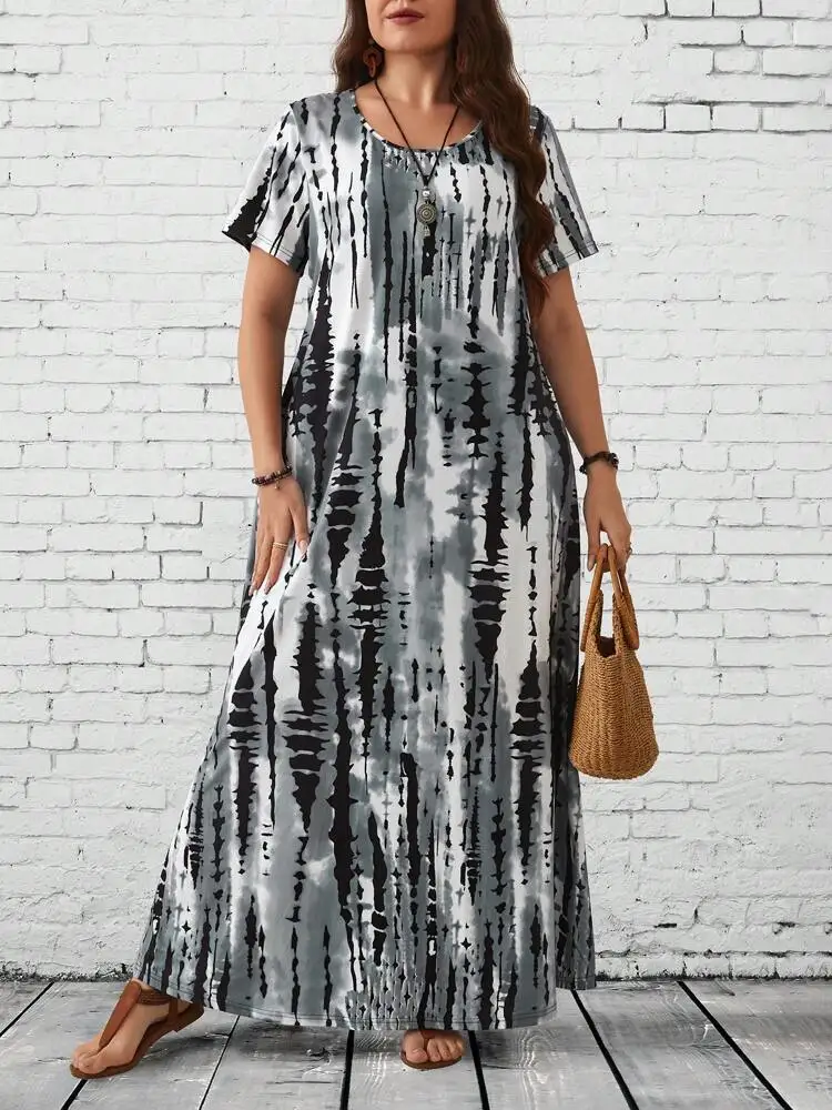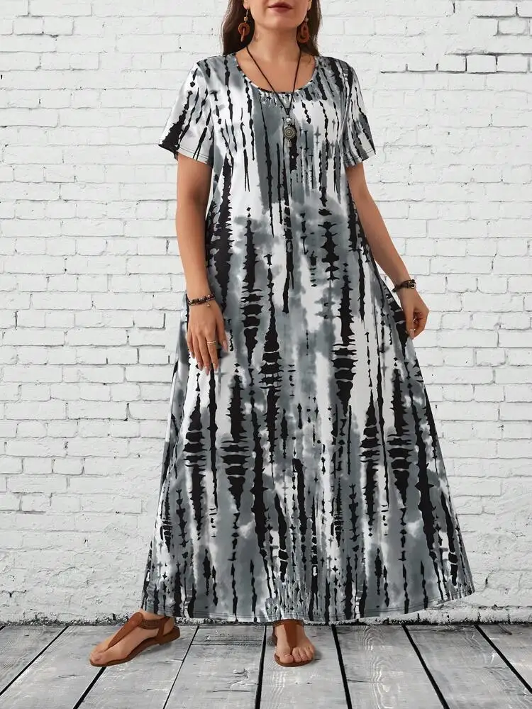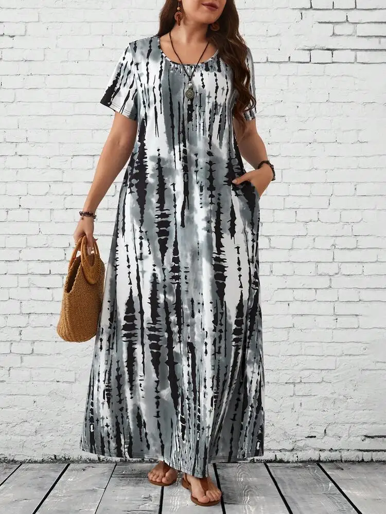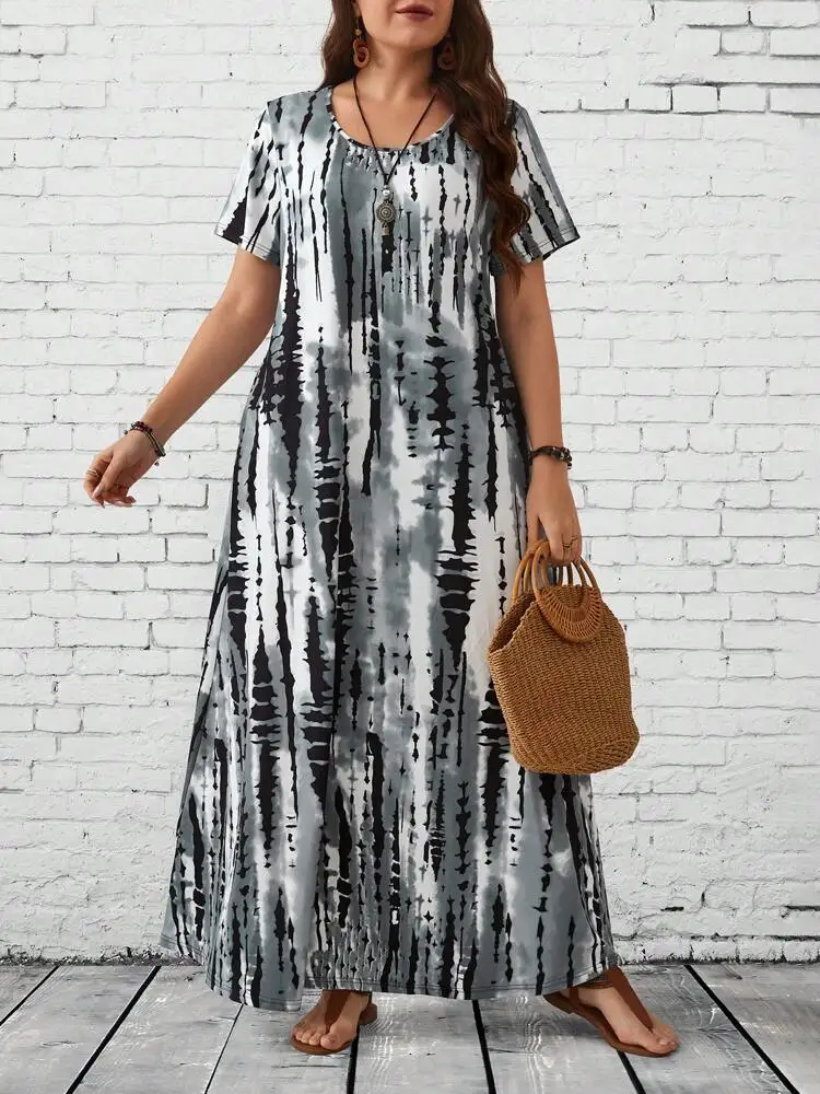 Summer women's casual printed long plus size dress