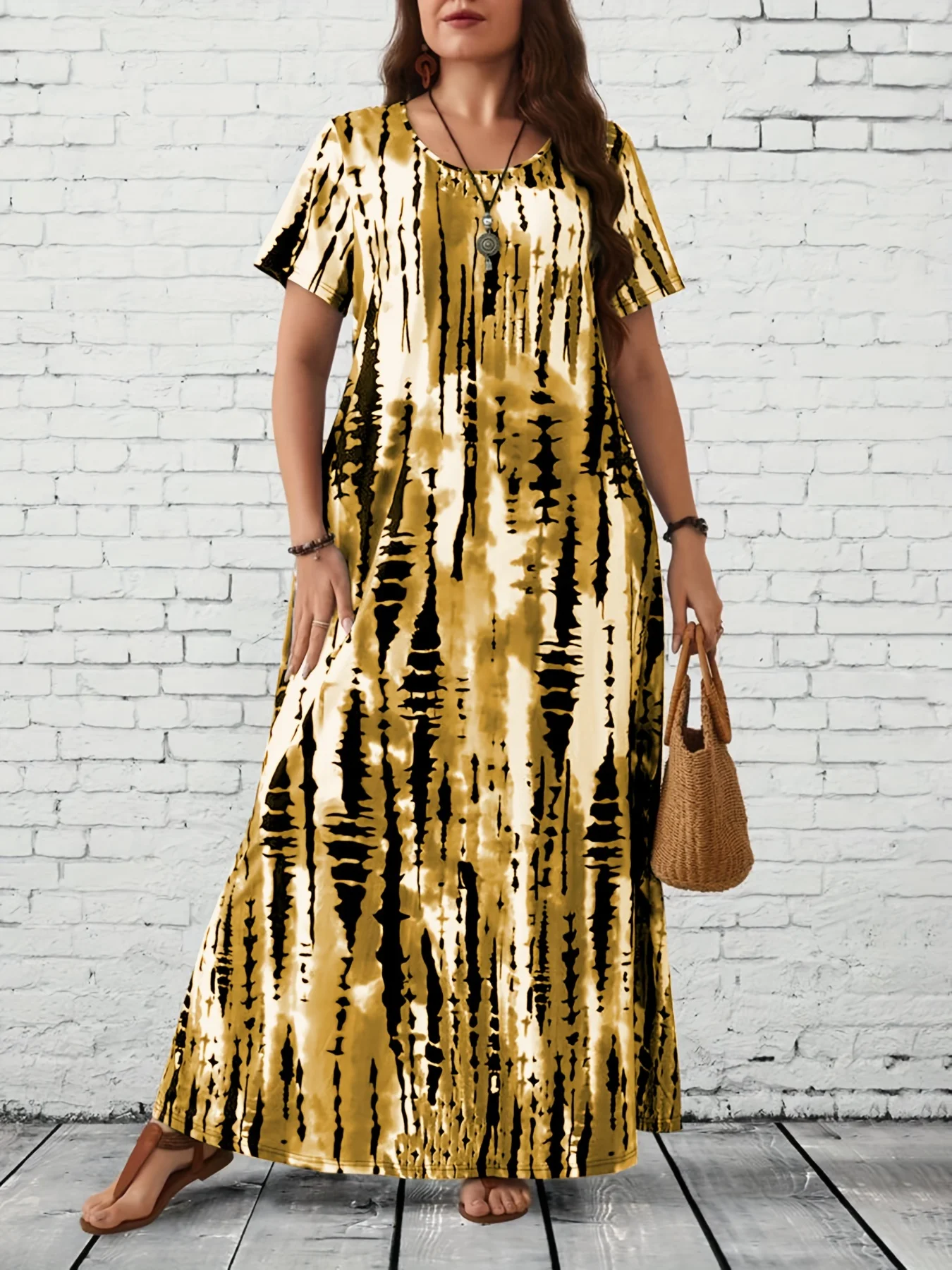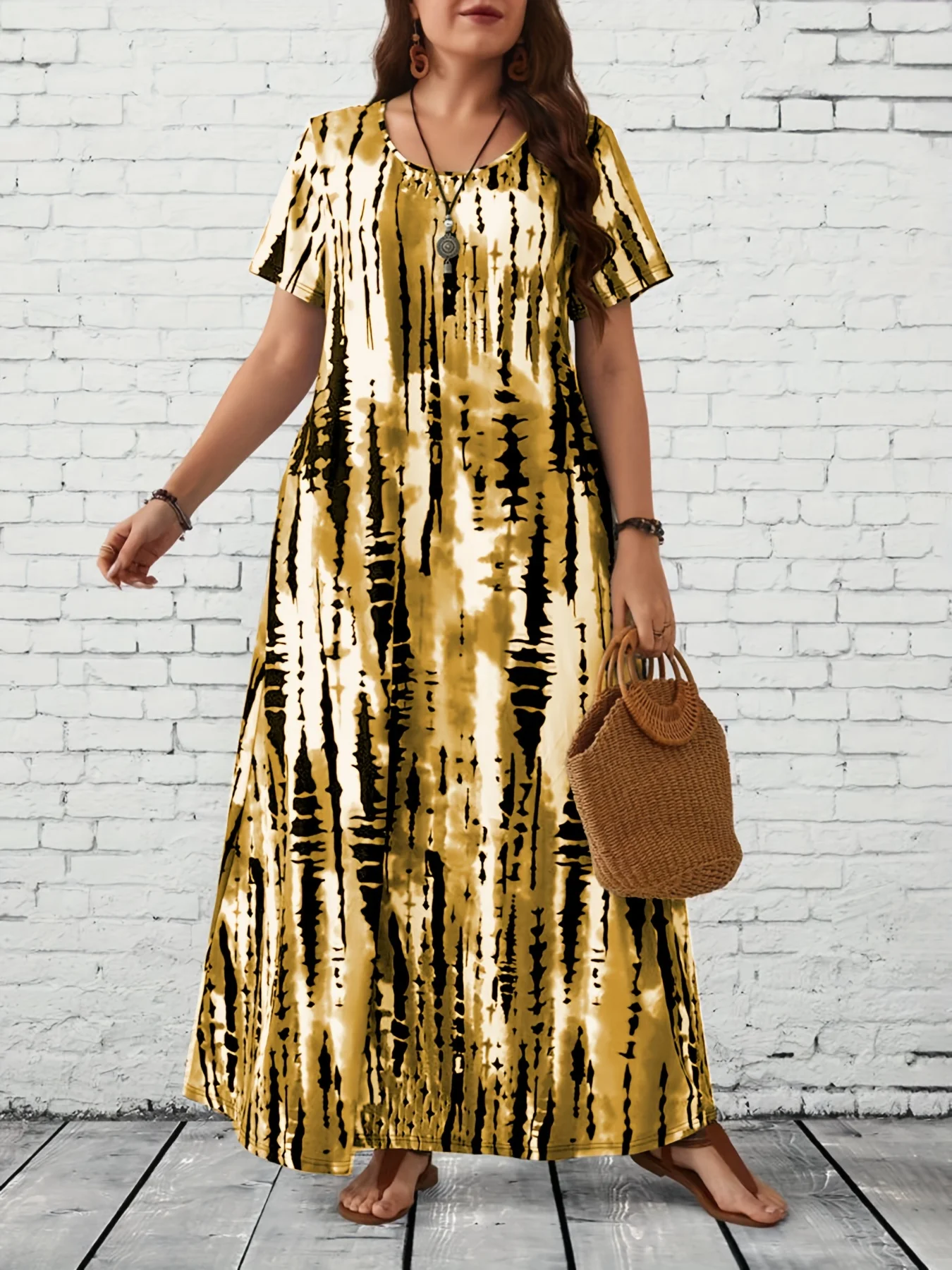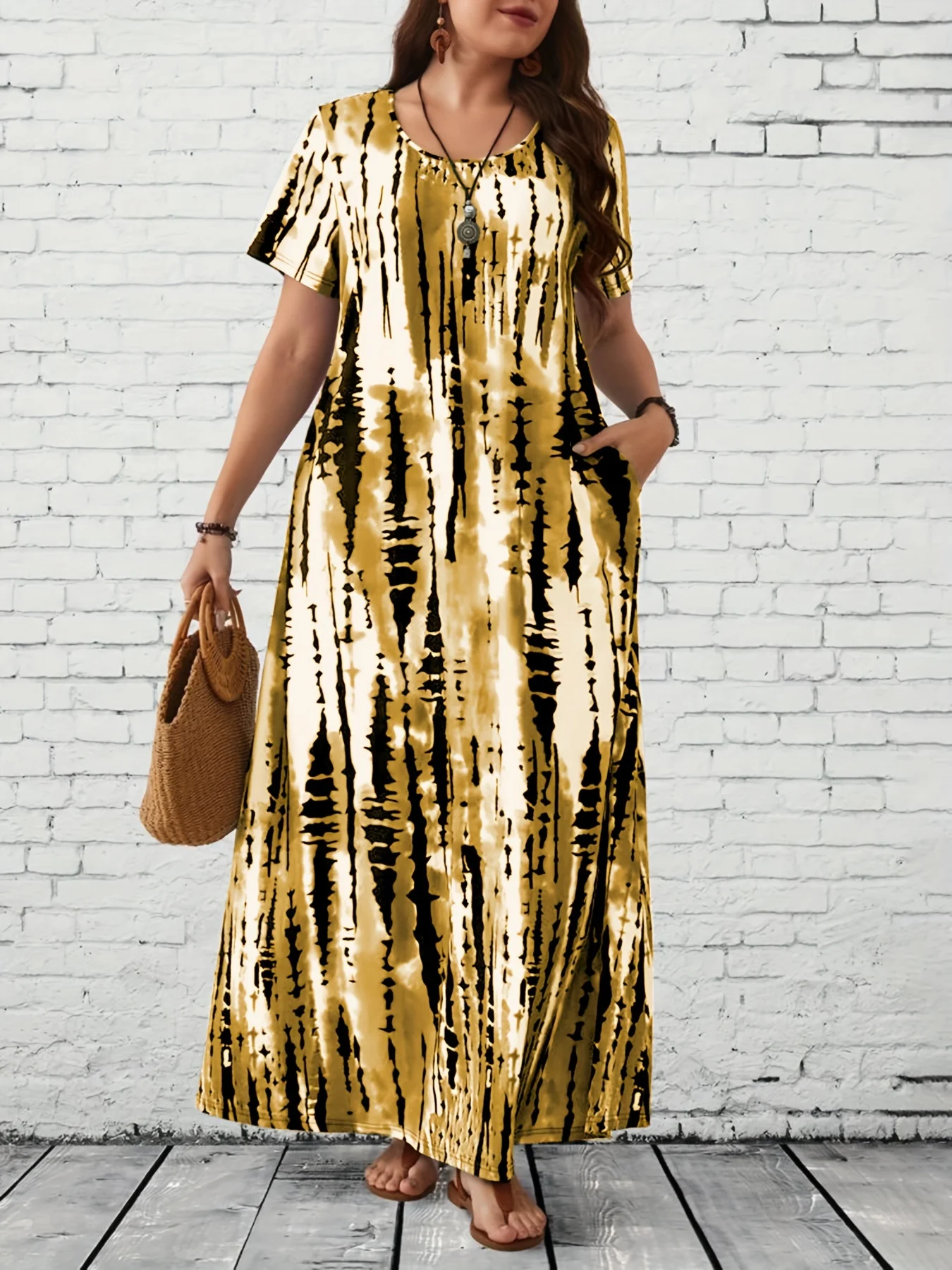 Summer women's casual printed long plus size dress