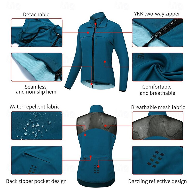 WOSAWE Spring and Autumn Season Women's Bicycle Cycling Windbreaker Vest Detachable Design Windproof and Waterproof Jacket Cycling Top BH233 3