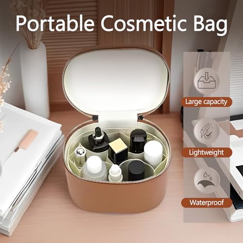 Upgrade Makeup Bag Travel Toiletry Bag Portable Cosmetic Makeup Organizer Bag Detachable Compartments (Brown-retro vibes style) 1