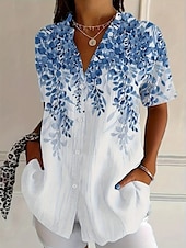 More information about Women's 1950s Interstellar Atom Shirt Floral Graphic Bohemia Vintage Tropical Sleeveless Short Sleeve Shirt Collar Regular Tops Daily Light Green Blue Orange Green Gray Summer Spring