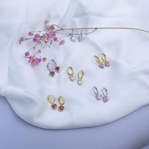 More information about Heart Earrings Dangle Hoop Earrings for Women White Gold Plated Trendy Cubic Zirconia Bling Jewelry Hypoallergenic Valentines Day Earrings