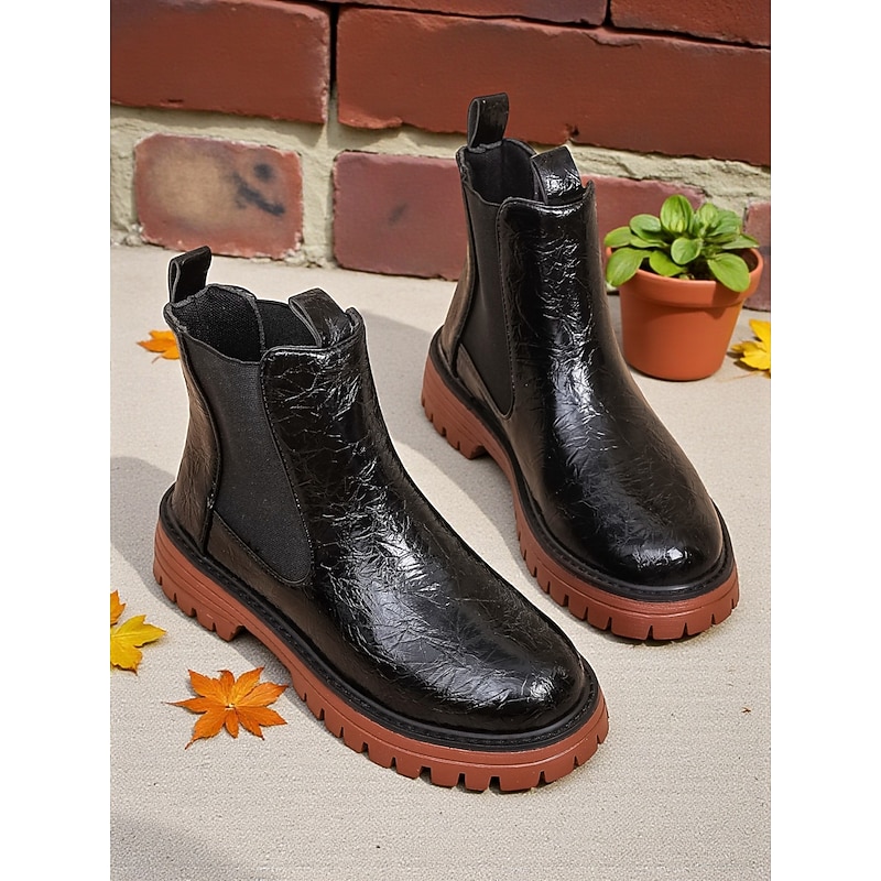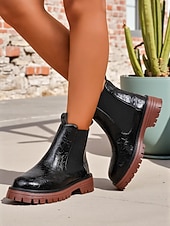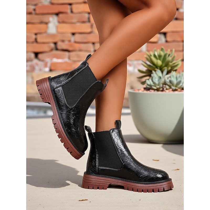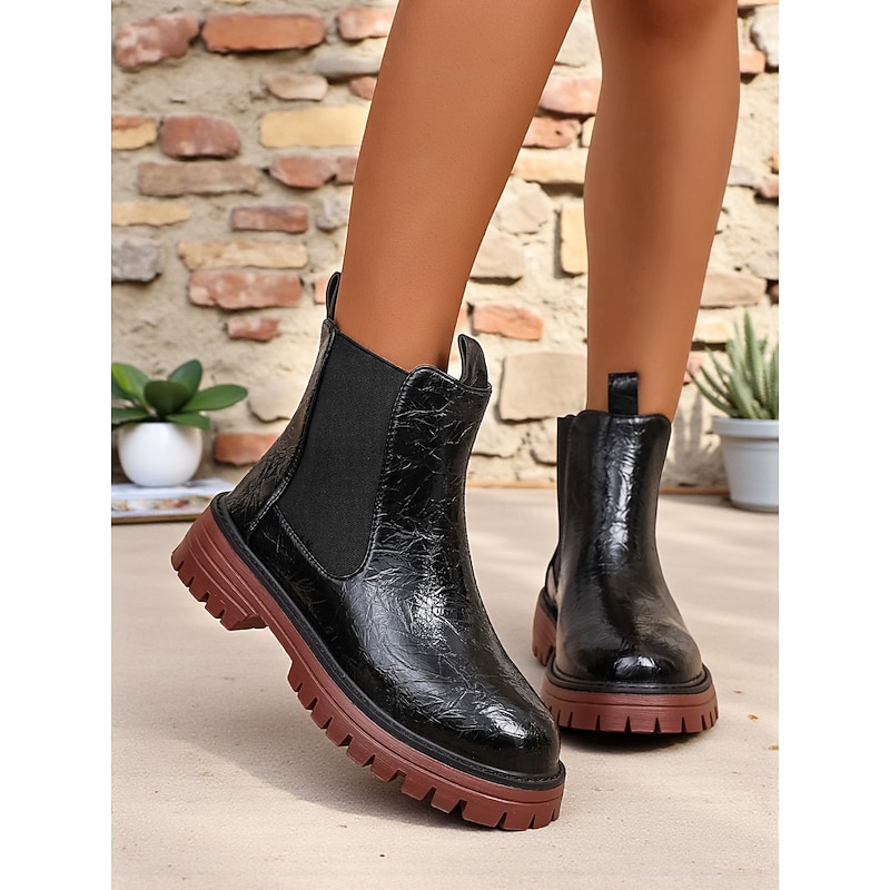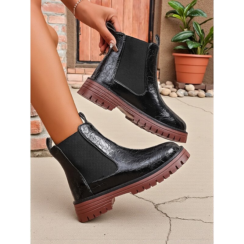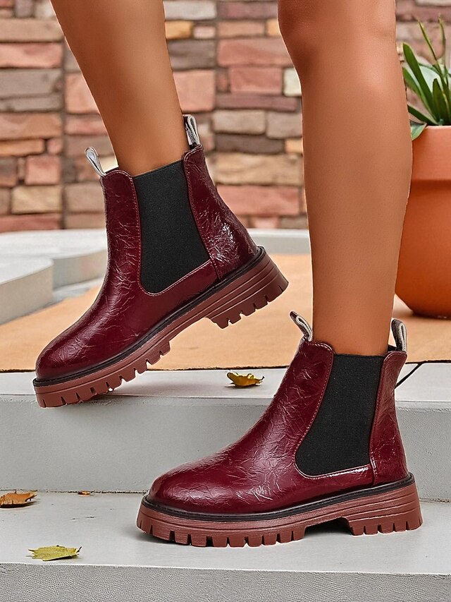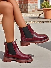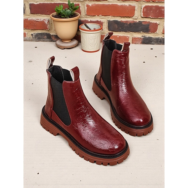 HOT ! Women's Burgundy Faux Leather Chelsea Boots with Elastic Side Panels and Non-Slip Sole, Stylish Ankle Boots for Fall Winter Casual and Daily Wear