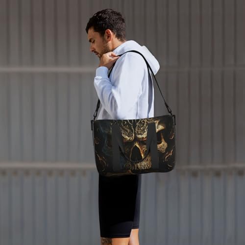 • Multi-Purpose Use: Designed for a variety of activities, this Metal Evil Skull versatile bag is ideal for travel, weekend getaways, gym sessions, tennis, fishing, and more. It can function as a gym bag for men, a travel tote for women, or even as a women’s overnight bag