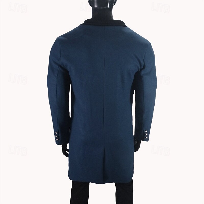 Men Overcoat Peacoat Long Trench Coat Trench Coat Casual Fall Winter Polyester Outerwear Clothing Apparel Classic Notch lapel collar 4