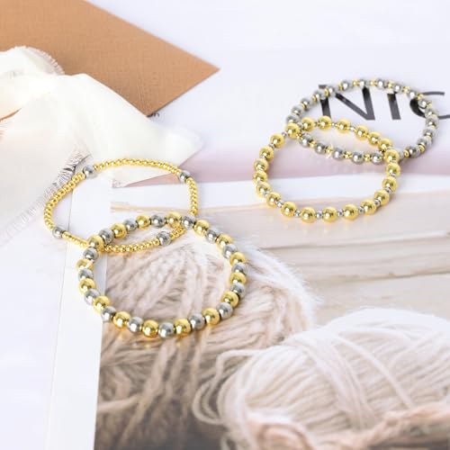 7Pcs Gold Bracelets for Women Gold Plated Beaded Bracelet Elastic Stretch Bead Ball Stack Set Stretchable Adjustable Gold Jewelry Gifts 4