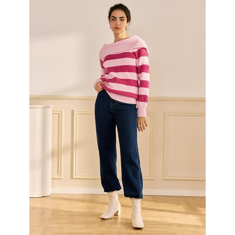 $82.99 - Off Shoulder Ribbed Knit Wool Blend Fall / Winter Causal Rose Red Sweater 2025. Shop for cheap Ugly Sweater online? Buy at lightinthebox.com on sale today!