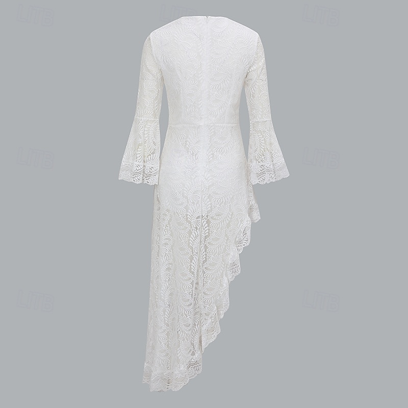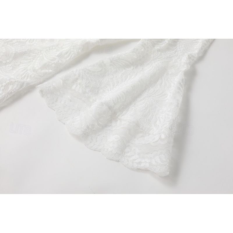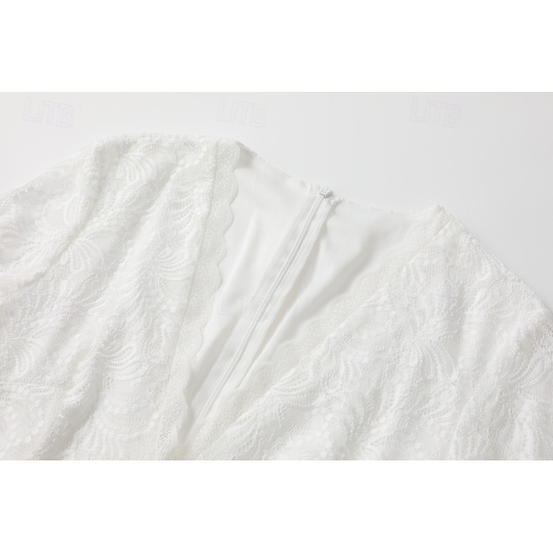 More information about Women's Midi Dress Lace Dress Vintage Dress Fashion Modern Outdoor Vacation Holiday Regular Fit Plain Long Sleeve V Neck White Summer