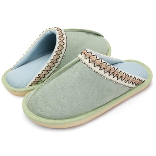 • Ultimate Warm & Comfort: Slippers for women made from classic faux suede upper with delicate embroidery and soft lining, these slippers provide excellent warmth while allowing breathability, keeping your feet comfortable in varying temperatures throughout the year
