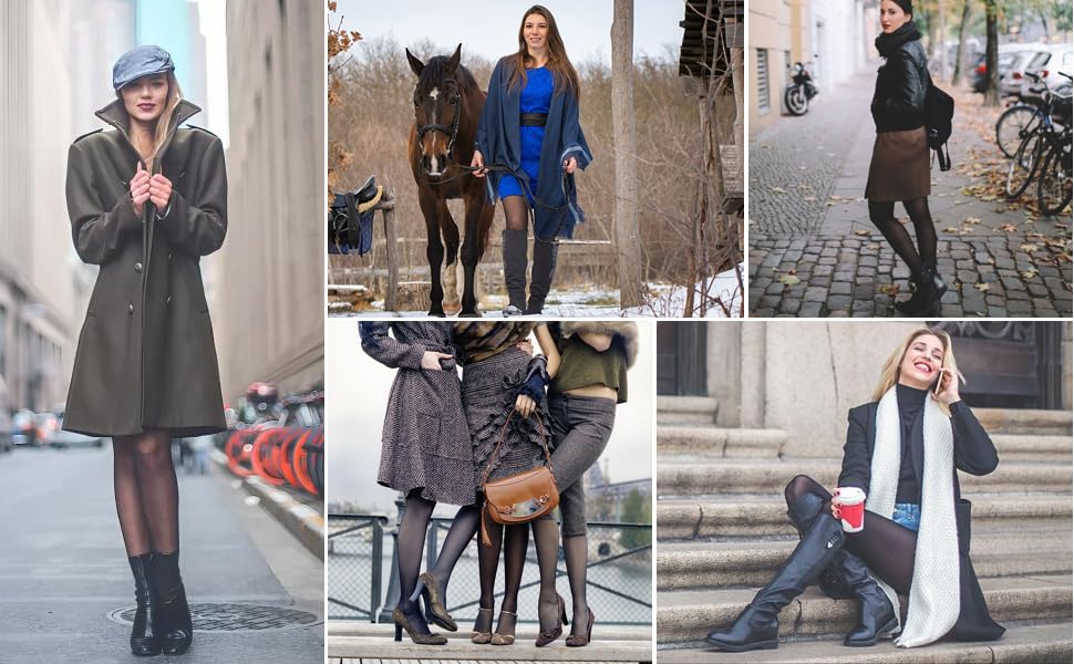 • 🔥Faux Translucent Women Tights: Easy to stretch, easy to recover. Great to wear under pants, shorts, skirts, tunics, and long sweaters. Good choice to pair with your boots and heels in winter.