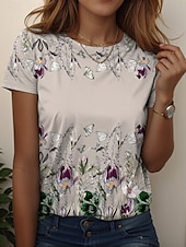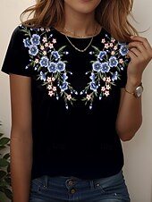 More information about Women's T Shirt Floral Graphic Stylish Casual Short Sleeve Round Neck Regular Tops Daily Weekend Print Black Blue Khaki Summer Spring