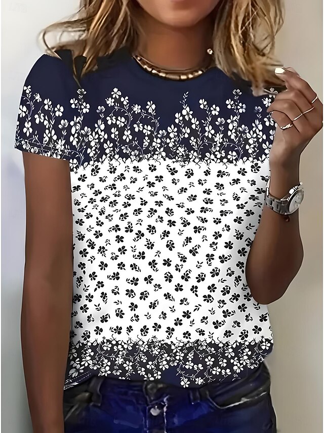 HOT ! Women's T Shirt Floral Graphic Stylish Casual Short Sleeve Round Neck Regular Tops Daily Weekend Print Black Blue Khaki Summer Spring