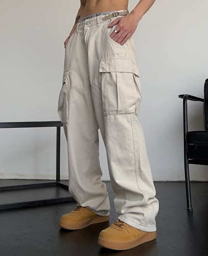 Men's Loose Cargo Pant Sexy Low-Rise Straight Casual Trendy Hip-Hop Adjustable Waist Denim Pants with Pockets 6