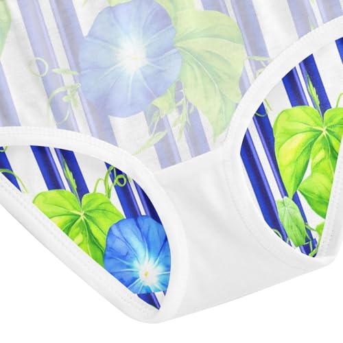 Blue Morning Glory Flowers Stripe Girls Underwear Toddler 2t Cotton Little Girl Panties Durable Undies Kids Briefs 4
