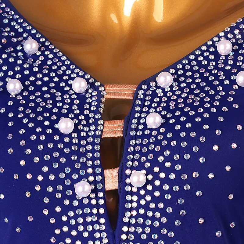 More information about Ballroom Dance Dress Crystal / Rhinestone Pearls Women's Training Performance Long Sleeve High Chinlon Chiffon