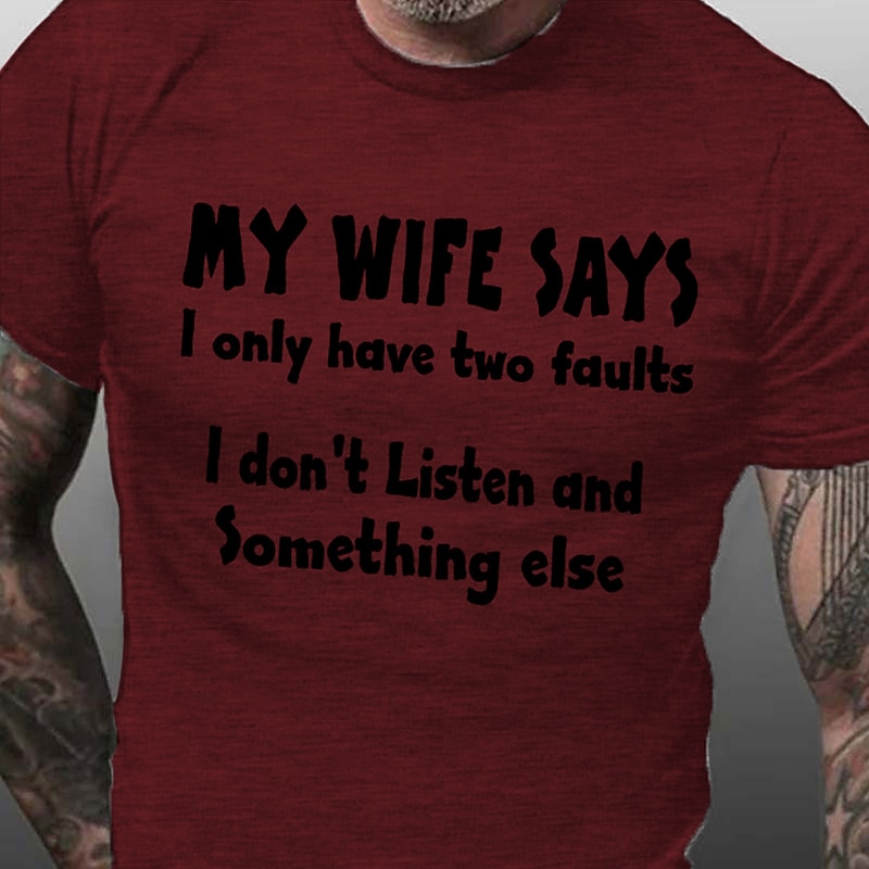 Men's Funny T-Shirt: My Wife Says I Don't Listen Humorous Relationship Tee for Husbands 24