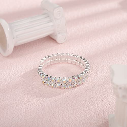 HOT ! Xerling Full Crystal Iridescent Rhinestones Bracelets for Women Silver Layered Hand Chain Bracelets Bridal Wedding Hand Jewelry (AB Crystal-2 Row)